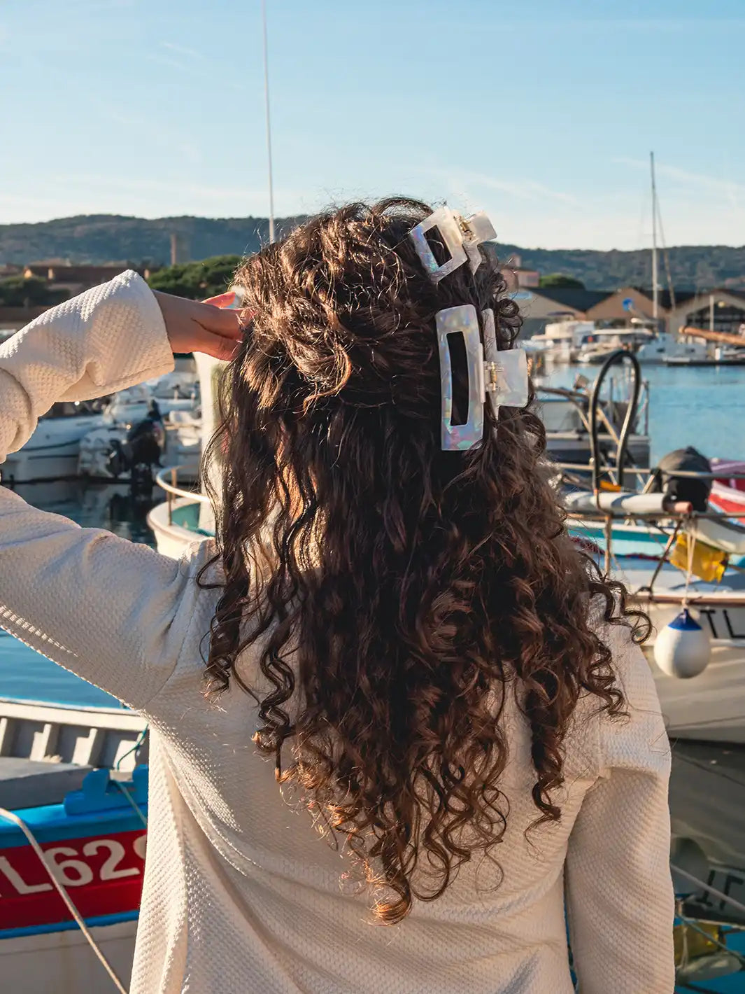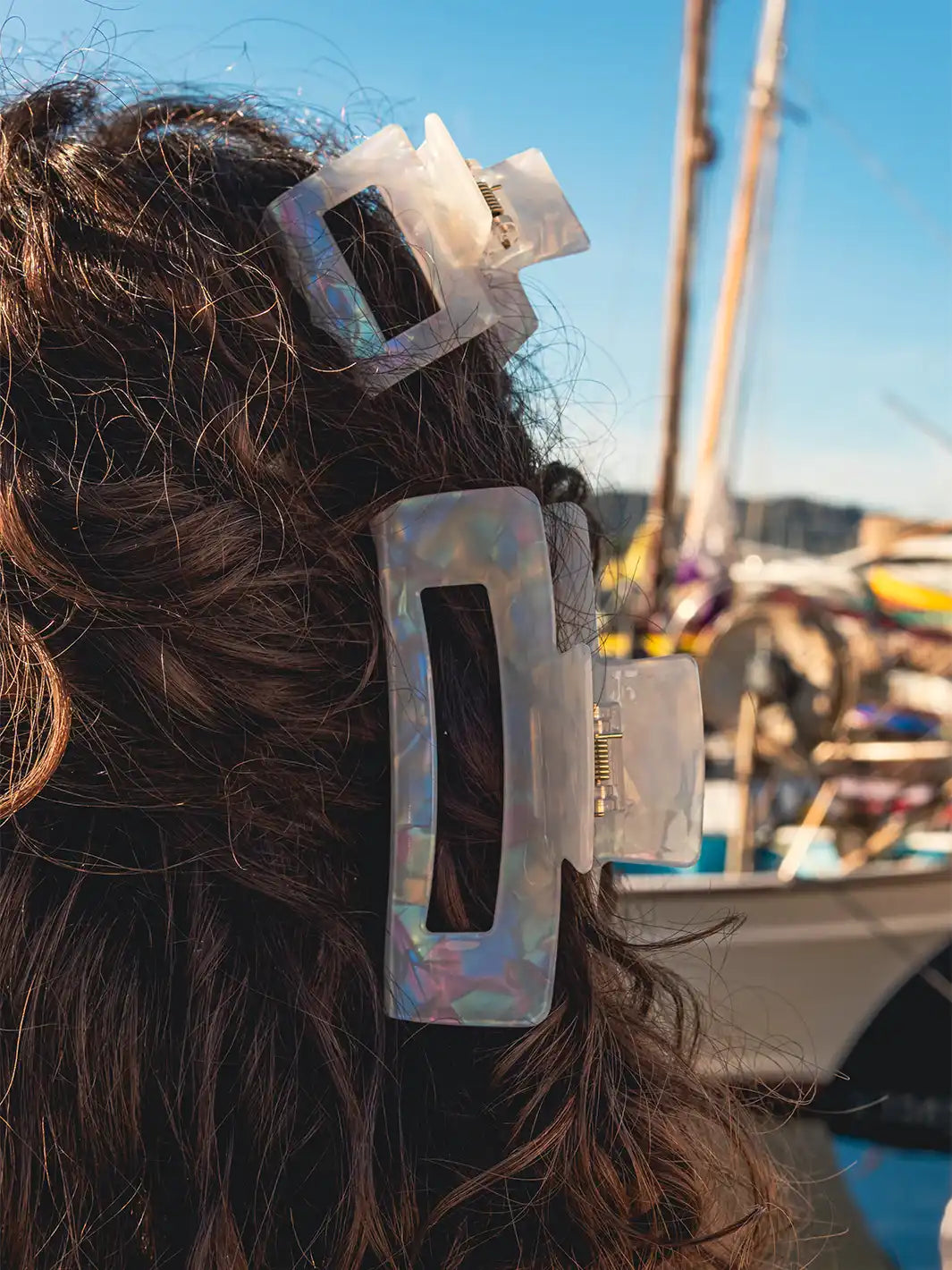 Add a pop of shimmering color to your hair with this set of two acrylic claw clips, each imbued with multi-colored holographic flecks. Designed to hold any hair type with ease, these clips feature a professional-strength spring for a secure, all-day grip, whether you’re styling an updo with the large clip or adding a touch of flair with the mini.